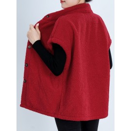 Plaid Pattern Button Front Teddy Coat - Women's Long Sleeve Winter Outwear